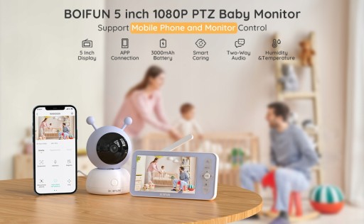 - Монітор для дитини BOIFUN із камерою та аудіотелефонним додатком має різні функції, наприклад