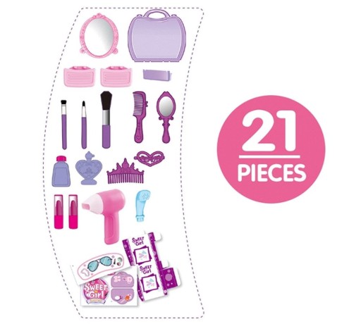Дуже красиво зроблений набір буде гордо виглядати на вашому домашньому туалетному столику, завдяки ньому маленький перукар зможе створити зачіску для своєї ляльки, свого ведмедика, а може навіть мами та бабусі!