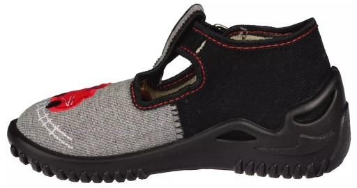 Дитячі кросівки ZETPOL сірого кольору з чорними елементами та цікавою вишивкою спереду. Вони виготовлені з натуральних матеріалів, таких як бавовна, що гарантує достатню вентиляцію.Ця модель застібається на липучку, що полегшує надягання і знімання.Посилена п'ята забезпечує стабільність і безпеку. Всередині тапочки оснащені шкіряною устілкою, яка забезпечує правильний розвиток стопи дитини та високий комфорт під час використання.Гнучка, дихаюча підошва запобігає ковзанню, а барвистий верх привертає увагу.Високоякісне виготовлення забезпечує довговічність та комфорт використання.