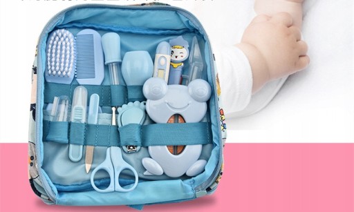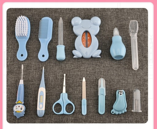13 комплектів полотняних мішків, один набір для вирішення проблеми догляду за дитиною. Міні-кусачка для нігтів: розроблена для маленьких нігтів дитини, проста у догляді. Пилочка для нігтів: видаліть задирки, що залишилися після обрізання нігтів дитини. Крапельниця: легко дайте дитині ліки. Щітка: ретельно підібрані матеріали , кожна щетина тонка та м’яка Вимірювання температури: дисплей температури добре видно; Назальний аспіратор: Округлий мундштук для захисту носової порожнини дитини Гребінець: Весь округлий і не має мертвих кутів, що захищає дитину Звичайний рот: прозора луска, проста у використанні Зубна щітка з пальцями: м’яка щетина, задні виступи можуть почистити покриття язик Ножиці: круглі голови підходять для немовлят, прості у використанні Пінцет: пінцет із круглим наконечником, прості у використанні Вимірювання вух: вимірювання вух світлом, видимим і не пошкоджує вухо Електронний термометр: вимірювання температури однією кнопкою , простий у використанні