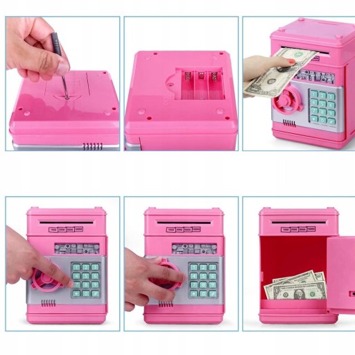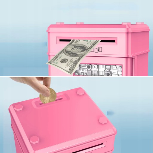 - Може зберігати всі види монет або банкнот. Велика місткість є достатньою для задоволення потреб дітей, а також може вмістити невеликі приватні речі. Це цікавий сейф, особливо для дітей.