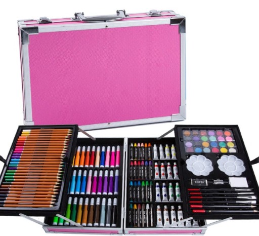 У набір входять фарби, крейди, олівці, пензлики, клей, бісер і багато іншого, що дозволяє створювати різноманітні витвори мистецтва.