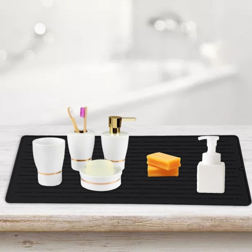 ЗАСТОСУВАННЯ: Аксесуари для змішувачів ефективно запобігають бризкам води та плямам на стільницях кухні та ванної кімнати, а також можуть використовуватися як килимки для зберігання зубних щіток, чашок, дезінфікуючого засобу, миючого засобу.