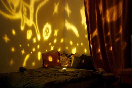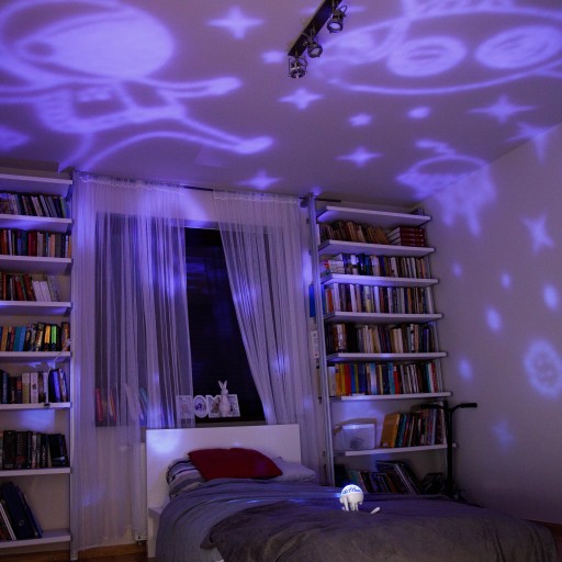 Змінні тарілки дозволяють дитині досліджувати космос або глибини океану. Проектор дозволяє вибрати колір проекції. Вибрані зображення/історії можуть відображатися трьома кольорами: синім, білим або білим.