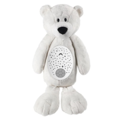 Проектор, розташований у животі ведмедика, відображає на стелі та стінах зоряне небо червоним, синім, зеленим або фіолетовим кольором.