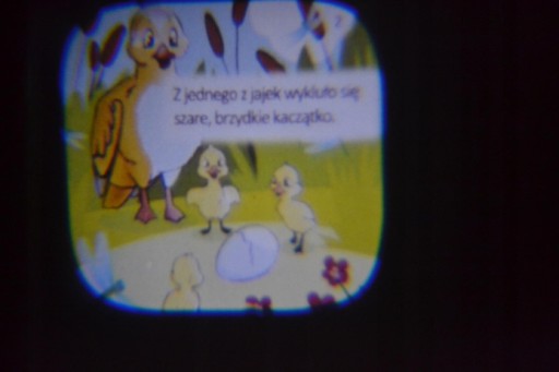 Все, що вам потрібно зробити, це вставити картридж з мультфільмом «Гидке каченя» в проектор*, і ви можете разом вирушити у світ маленького каченяти.