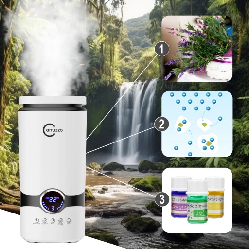 Зволожувач оснащений функцією ароматерапії, перевага цього зволожувача в тому, що ароматерапевтичні краплі додаються в спеціальний контейнер для масел в основі зволожувача. Вам не потрібно міняти жодні фільтри та турбуватися про їх наявність. Після додавання крапель у воду з туману виділяється приємний аромат, який наповнює кімнату.