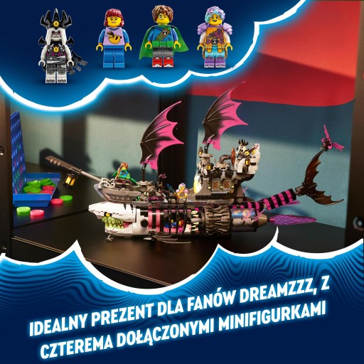 • Створюйте транспортний засіб двома способами — діти можуть побудувати детальний транспортний засіб за допомогою набору LEGO DREAMZzz Nightmare Shark Ship (71469), заснованого на телесеріалі.