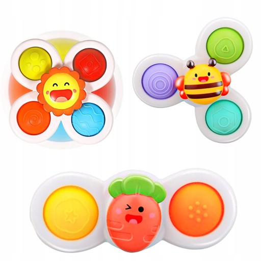 ????【Спінер із присоскою】: ви отримаєте милу дитячу іграшку з 3 різними малюнками: сонечко, бджола та морква. Батарейки не потрібні. Просто проведіть пальцем, щоб скористатися. Гнучкі підшипники для постійного обертання. Сильна адсорбція Присоска може адсорбуватися на будь-якій гладкій поверхні: стіни, підлога, обідні столи, ванни, вікна автомобіля тощо. Незалежно від того, вдома чи на вулиці, дитяча обертова присоска завжди розділить щасливі моменти з вашою дитиною!