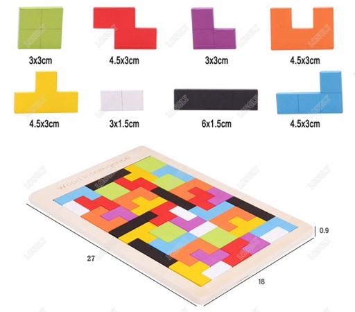 ДЕРЕВ'ЯНИЙ ПАЗЛ ТЕТРИС, повністю виготовлений з дерева.