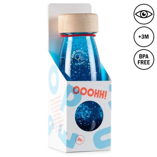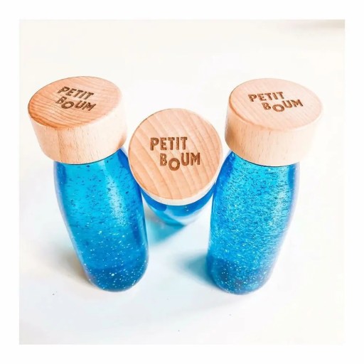 Гра з сенсорною пляшкою — це чудовий спосіб навчитися розрізняти звуки: від найтихіших до найсильніших, приписуючи значення кожному звуку та навчившись знаходити його джерело. Сенсорні пляшки Petit Boom є чудовим інструментом для стимулювання великої моторики: складання пляшок, струшування, катання або обертання в руках.
