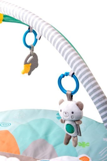 Основа навчального килимка м'яка, її можна класти на підлогу. Підвісні іграшки активізують дитину хапати, а дзеркало стимулює зір. Дитячий килимок підходить з перших тижнів життя.
