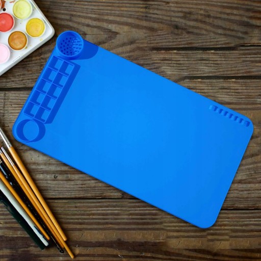 Багатофункціональний: з місцем для фарб, підставкою для пензлів, розеткою для змішування кольорів і розеткою для чищення пензликів.