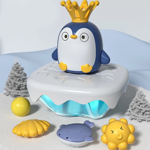 Ці дитячі іграшки для купання можуть бути чудовими та креативними, щоб зробити час купання для маленьких дітей веселішим та привабливішим. З веселим і яскравим дизайном пінгвіна він розбризкує воду з інших головних уборів пінгвіна. Підходить для малюків і дітей, які люблять грати у воді.