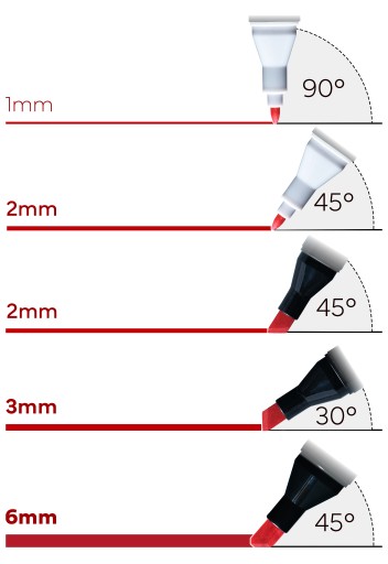 Завдяки унікальній формі кінчика, маркери дозволяють отримати до 4 точних ширин лінії!