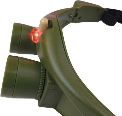 Цей іграшковий прилад нічного бачення від Scout є чудовим інструментом для перевірки місцевості під час наступної нічної подорожі. З цим приладом нічного бачення ваша дитина може досліджувати навіть вночі! Юний шукач пригод може спостерігати навколишнє середовище, залишаючись невидимим, і це дуже весело! 3 червоні світлодіоди регулюються по висоті, що дозволяє підлаштувати їх індивідуально для кожної дитини. Регульовані лінзи забезпечують відстань від очей, а застібка-липучка дозволяє пов’язці ідеально прилягати до голови. Цей виріб працює від двох батарейок ААА (не входять в комплект).