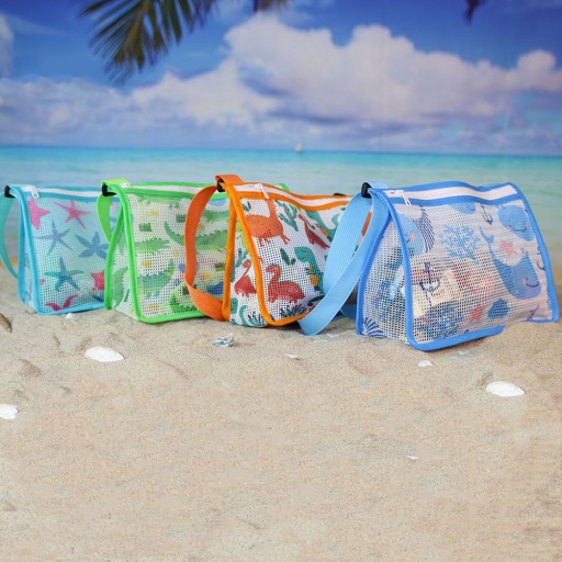 Сітчаста пляжна сумка є хорошим інструментом для пляжу, плавання або катання на човні та може легко відводити пісок і воду. Широке застосування, можна використовувати для зберігання іграшок, купальників, сонцезахисних окулярів, закусок тощо, діти люблять використовувати їх для збору знайдених скарбів і черепашок.
