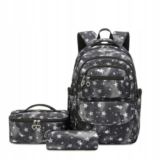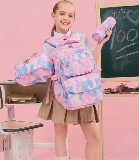 Міцний і довговічний комплект рюкзак, сумочка, пенал виготовлений з якісного водостійкого матеріалу. Рюкзак має дві основні камери, завдяки чому в нього помістяться всі необхідні речі. Крім того, три менших спереду для кольорових олівців, маркерів, фломастерів і т. д. Сумка ідеально підходить для упаковки сніданку, закусок і пеналу для основного письмового приладдя. Ідеальний набір для різних випадків, таких як школа, їзда на велосипеді, щоденне використання, подорожі, походи та кемпінг.