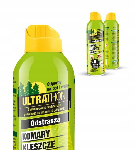 Ultrathon - це спрей, який відлякує комах, таких як комарі, мошки, мухи, комарі та кліщі.Містить репелент DEET в концентрації 25%.Завдяки повільному вивільненню репеленту та спеціально підібраному складу, який гарантує стійкість до дощу, вологість і піт, Ultrathon ідеально підходить для складних тропічних умов.