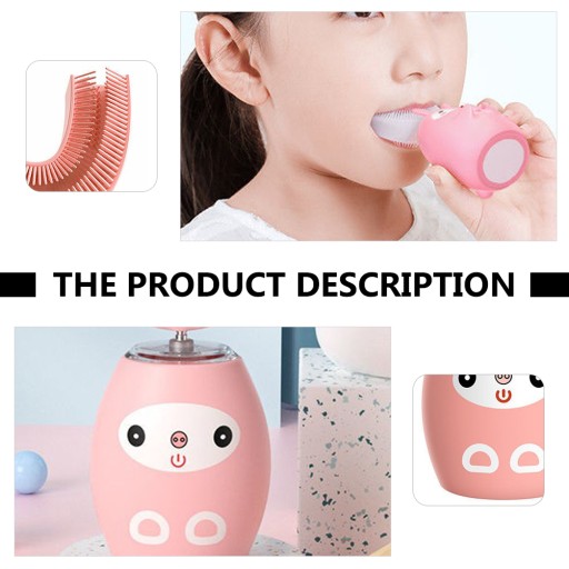 Це U-подібна мультяшна електрична зубна щітка. Виготовлений з харчового силікону та матеріалів ABS. Очистіть поверхню зубів і внутрішню сторону, кожне чищення зубів забезпечить вам швидкий і комфортний досвід ротової порожнини.
