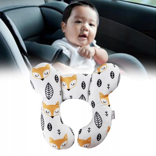 Дитяча подушка для дитячого автокрісла U-подібна голова, підтримка шиї, дихаюча бавовняна бавовняна жовта лисиця