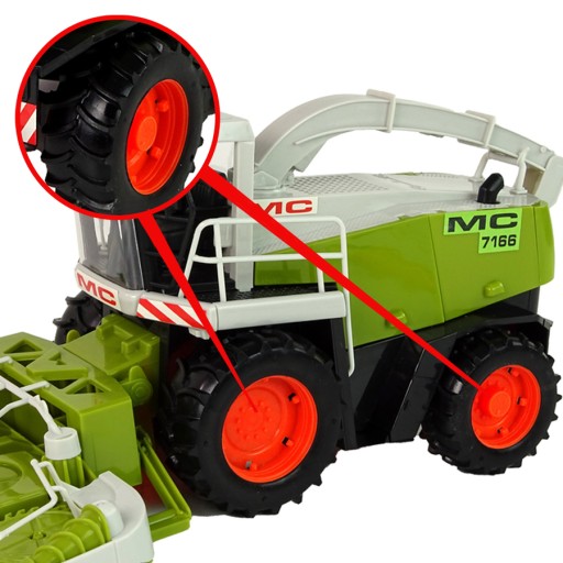 Представлений зернозбиральний комбайн має довжину до 36 см, що робить його більшим за стандартні комбайни, які продаються на ринку. Завдяки великому розміру дитина може безперешкодно грати, розігруючи різноманітні сценки та сценарії.