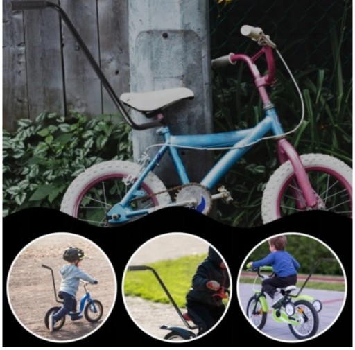 Встановлюється під сидінням велосипеда. Має гумову ручку, завдяки якій ви можете безпечно вести дитину на велосипеді.