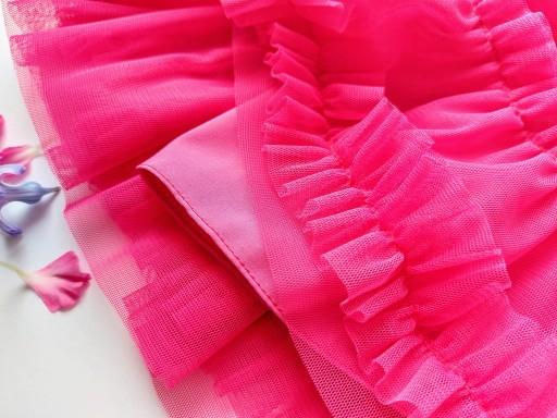 Спідниця з фатину з багатошарового матеріалу модного амарантового кольору. Додаткова прикраса - широка блискуча гумка. Підкладка виконана з елегантної повітряної тканини під колір тюлі