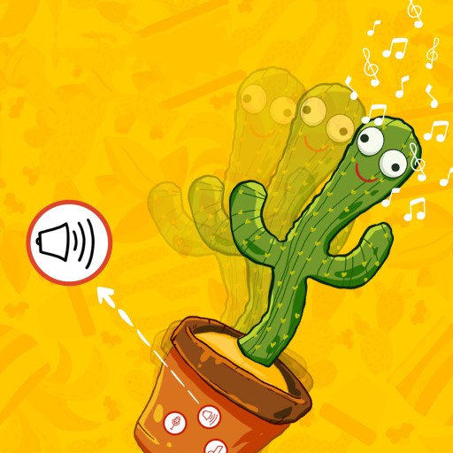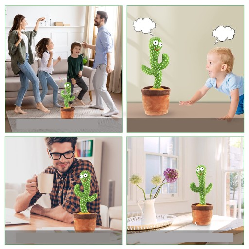 Talking Cactus має 120 англійських дитячих пісень, коли Dancing Cactus увімкнено, він танцює з миготливими вогнями, розкиданими по його тілу, хитається, дуже смішно. Весела музика і танці також можуть привернути увагу вашої дитини, дозвольте їй повеселитися!
