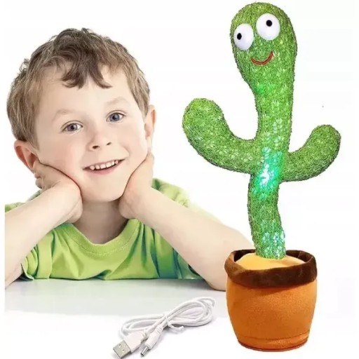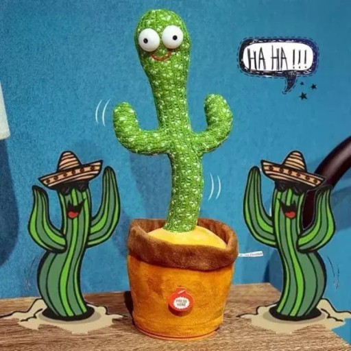 Кактус, який вміє співати і танцювати, і слова «папуги», які він чує, ось цей милий талісман. В іграшку завантажено близько 120 різних пісень, вона дуже кумедно танцює, а під час танцю її тулуб підсвічується різними диско-кольорами. У нього великі очі, смішний вираз і він повторює за тобою, як папуга! Іграшка виготовлена з тканини, а горщик для кактуса - з приємного плюшу.