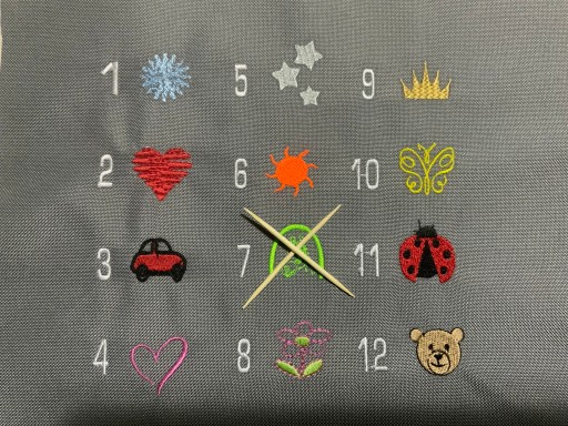 Друга додаткова підвіска виготовлена з тканини такого ж кольору. Ми можемо зробити вишивку імені іншим кольором, тоді повідомте, будь ласка, колір напису. Картина залишається незмінною.