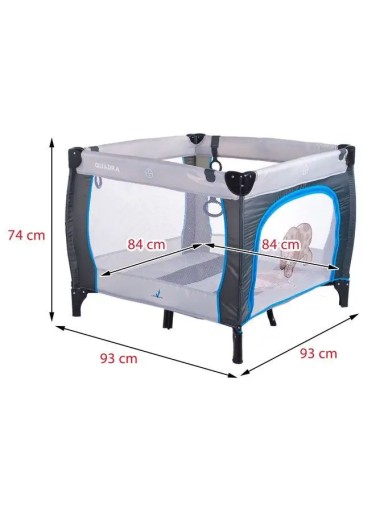 Квадра - легкий і практичний манеж квадратної форми. Виготовлений з тканини та високоякісного пластику, що робить його міцним. Оснащений килимком, дверцятами на блискавці та ручками для навчання вставанню. Quadra ідеально підходить як місце для гри та відпочинку вдома або під час подорожі. Проста збірка та зручна сумка полегшують транспортування манежу.