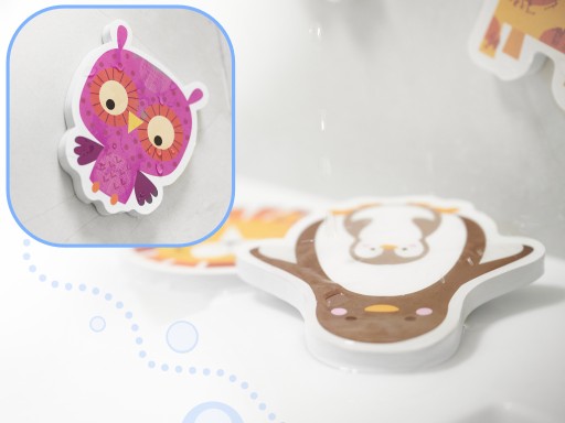 Всі елементи виготовлені з м'якого і міцного поролону. Вам не потрібен клей, щоб тримати пазли на ванні чи плитці. Просто замочіть їх у воді.