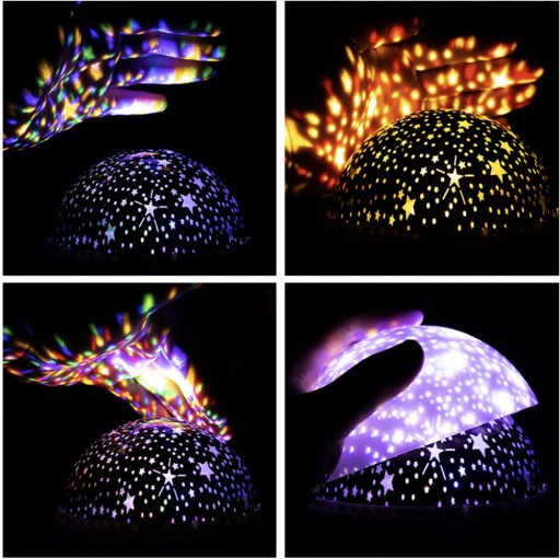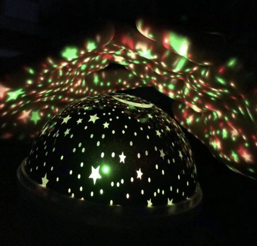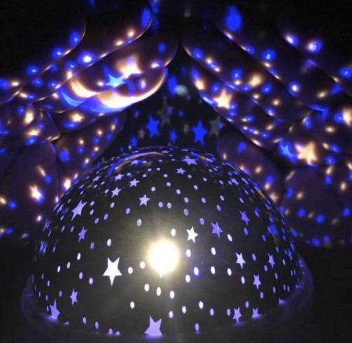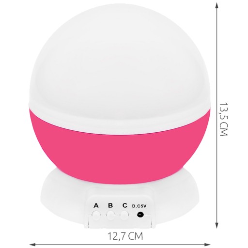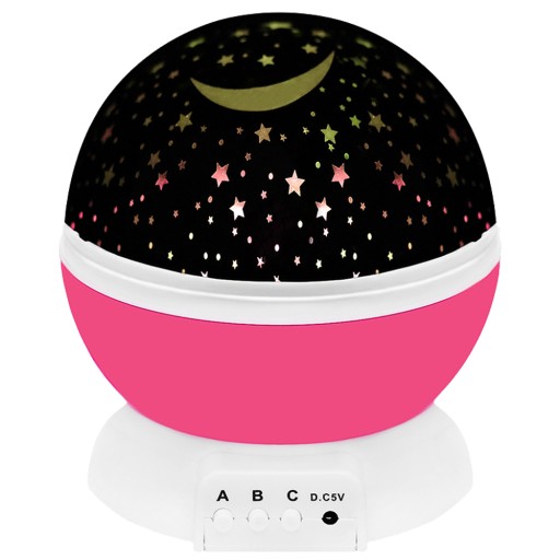 Дитячий нічник з проектором - практичний гаджет і чудова ідея для приємного вечора або міцного сну. Вона, безсумнівно, стане в нагоді всім дітям, які цікавляться зірковою тематикою, а також тим, хто боїться темряви. Лампа має форму кулі, незмінно прикріплену до основи, на якій розташовані 3 функціональні кнопки (A, B, C) і місце для кабелю живлення USB. Лампа виконує подвійну функцію. Залежно від того, залишаємо чи знімаємо верхню, молочну кришку, виріб можна використовувати як нічний, спокійний, освітлювальний або як проектор місяця та зірок у різних варіантах та колірних варіантах. При використанні функції лампи на кришці добре видно небесні тіла. Вони не розсипані і не «розмиті», як при роботі проектора.