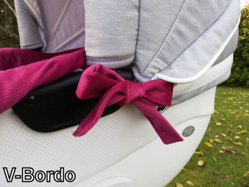 - Універсальний вкладиш, підходить для більшості колясок, виготовлений із сертифікованих тканин. Верх має вшитий гумовий шнурок, що дозволяє регулювати його по колу гондоли. Однак, вибираючи сповивання, ви повинні взяти до уваги, що вставка може не підходити до колясок із застібанням капюшона, оскільки наша вставка розгортається назовні, і їй потрібно приблизно 2 см, щоб підійти до чаші/гондоли. Крім того, для регулювання довжини використовуються вшиті ремінці, з яких можна зав'язати бантики, і наша гондола виглядає дуже особливо та неповторно.