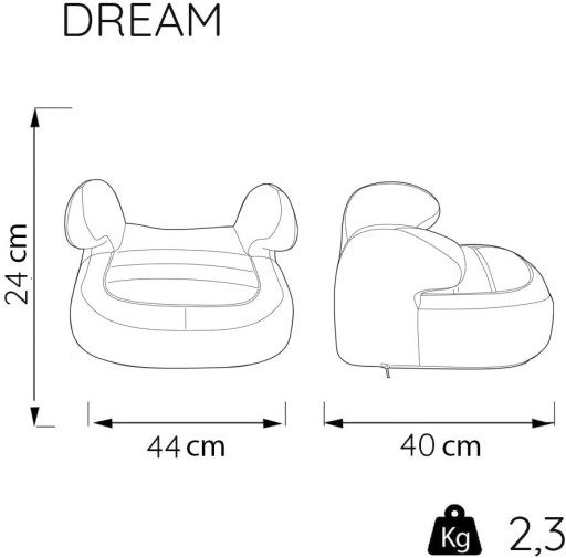 Сидіння DREAM XL призначене для дітей вагою 15-36 кг (2,3 гр.) Просте встановлення в будь-якому автомобілі, обладнаному 3-точковими ременями безпеки від відомого французького бренду Team Tex Анатомічна профільована форма підвищує комфорт подорожі Високі та зручні підлокітники пропускають повітря чохол Сидіння виготовлено з міцного пластику HDPE, сертифікованого відповідно до ECE R44/04⭐⭐⭐⭐⭐