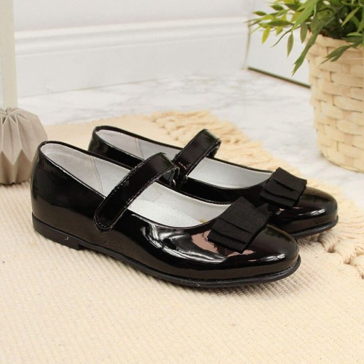 Балетки для дівчинки на липучці лаковані чорні Kornecki 4246