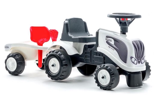 Трактор Ride-On Baby Valtra з причепом Falk - це мрія багатьох маленьких трактористів. Зроблено акуратно, з увагою до найменших деталей! Жоден справжній фермер не зневажатиме жодного. Транспорт виготовлений з пластику найвищої якості, призначений для дітей від 12 місяців. Автомобіль оснащений знімним причепом з панелями та рульовим колесом з звуковим сигналом. Колеса трактора виготовлені з якісного пластику. Окрім трактора, у нас є граблі та лопата, якими можуть бавитися діти.