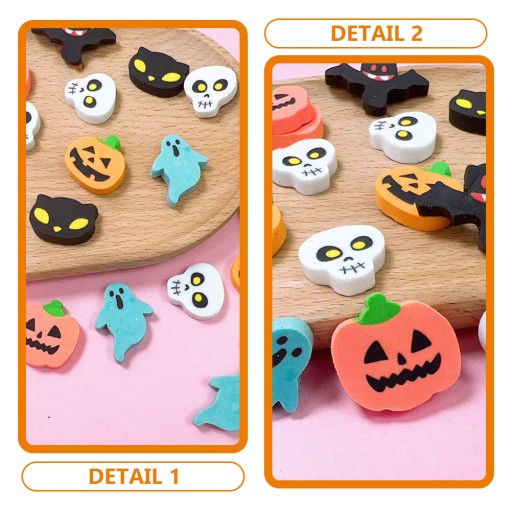 Ці гумки на Хелловін із матеріалу TPR милі та практичні. Ці гумки підходять вам під час малювання та можуть стерти звичайне написане олівцем. Не тільки практично, але і красиво. Ви можете зробити подарунок друзям.