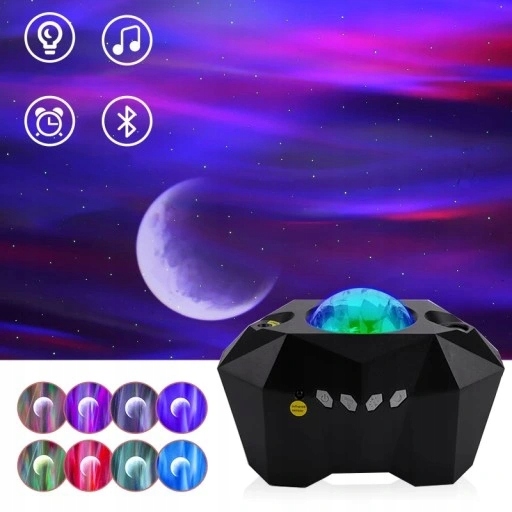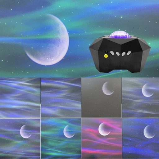 Проектор Aurora Star Night Light може проектувати реалістичне нічне зоряне небо та полярне сяйво на стелю. Завдяки Північному сяйву, Місяцю та зіркам можна створити до 15 режимів проекції. Це як подорож навколо Північного полюса, досягнення та торкання Північного сяйва, фантазії та веселого проектора зоряного неба.