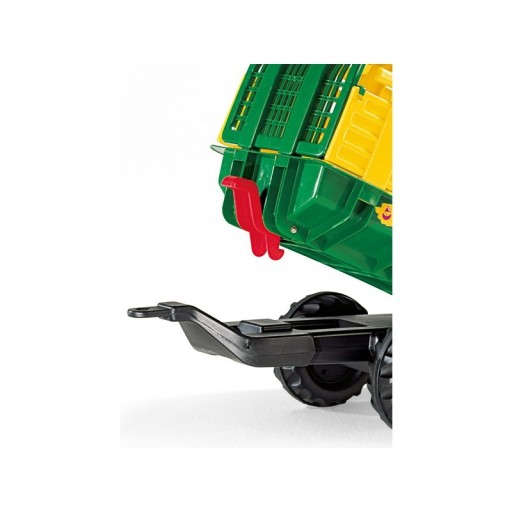 Двовісний причіп для перевезення дров або сіна. Причіп використовується для перевезення речей, має адаптовану зчіпку для кріплення на задню частину трактора. Виріб виготовлено з якісних, міцних матеріалів - пластику та металу. Це стимулює дитячу творчість і розширює функціональність автомобіля.