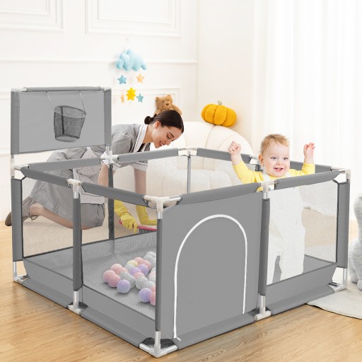 [Баскетбольні тренування в будь-який час]: дитячий манеж оснащено невеликим баскетбольним кільцем, щоб ваша дитина могла кидати м’ячі чи інші речі. Розвивайте хватальні рухи малюка і сприймайте малюком світогляд.