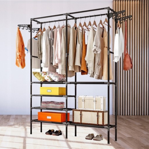 Через міцну конструкцію та стійкі полиці ми повинні турбуватися про те, що вішалка перекинеться, коли на ній багато розвішаного одягу.