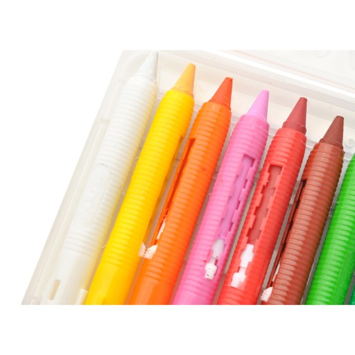 Олівці поміщені в пластикові футляри, завдяки чому їх легко наносити і розподіляти, а саме нанесення не бруднить руки. Крім того, ручний повзунок полегшує вилучення нової порції кольору.