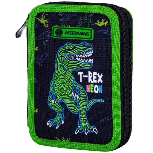Двокамерний пенал Astrabag з серії T-Rex Neon - справжня насолода для найменших шанувальників динозаврів. Унікальна графіка короля доісторичних рептилій і чорно-зелені кольори вкрадуть серця всіх студентів. Пенал Astrabag має два містких відділення. Крім того, він повністю укомплектований необхідними канцтоварами та художнім приладдям. Завдяки йому кожна дитина з радістю розпочне новий навчальний рік. Пенал ідеально підходить для I-IV класів.