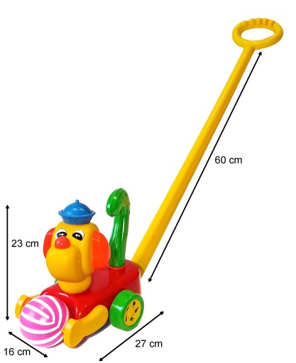 СОБАКА З ПІКом - це іграшка-штовхач, виготовлена з сертифікованого та безпечного для дітей матеріалу та в цікавих та привабливих кольорах.