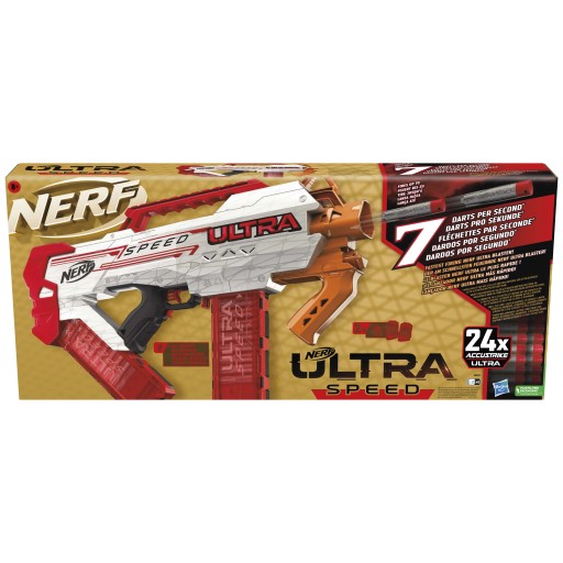 НАЙШВИДКІША СТРІЛЬБА NERF ULTRA BLASTER: Nerf Ultra Speed Blaster стріляє 7 дротиків на секунду* за допомогою повністю моторизованого дротика!