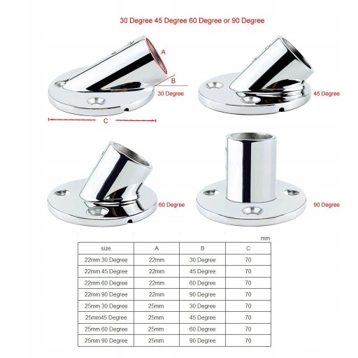 Міцна ручна рейка з нержавіючої сталі 316 d 22 мм 30 градусів