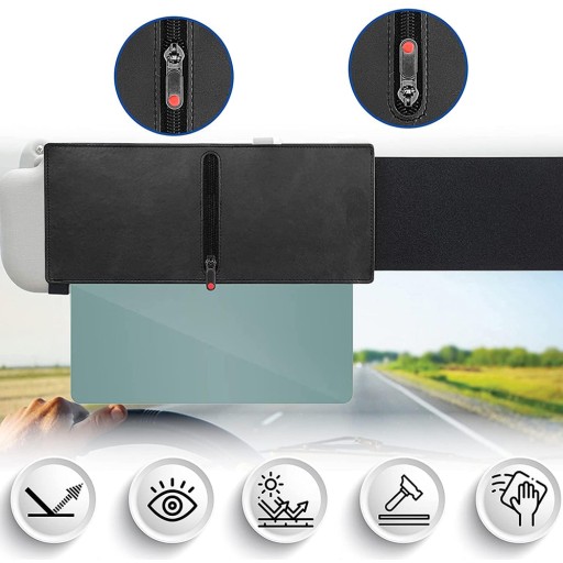 Підходить для всіх транспортних засобів: наш автомобільний подовжувач козирка підвищує безпеку водіння та сумісний з більшістю автомобілів, позашляховиків і вантажівок. Панелі штор захищають вас від сонячного світла, що падає з низьких кутів. Також можна використовувати як козирок автомобільного вікна, щоб заблокувати сонячні відблиски від бічного скла, використовуючи як нижню, так і бічні панелі сонцезахисного козирка.