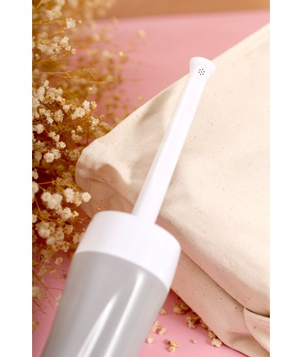 Відкрутіть ковпачок і вийміть душову лійку. Зафіксуйте його в гайці. Наповніть пляшку теплою водою або іншим розчином для інтимного вмивання. Використовуйте міні-душ догори дном, кінчиком донизу. Після використання злийте флакон від залишків рідини, промийте проточною водою, вимийте наконечник для душу з милом.